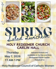 Holy Redeemer Council of Catholic Women is hosting their annual Spring Salad Luncheon.